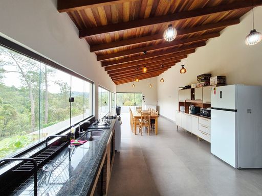 • Cozinha integrada ao espaço gourmet (churrasqueira, forno e fogão a lenha)