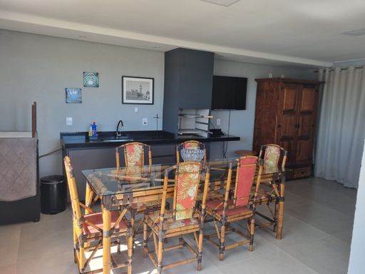 - Área gourmet no piso superior com churrasqueira e lavabo