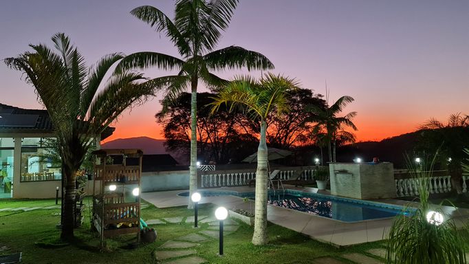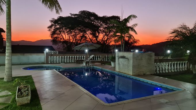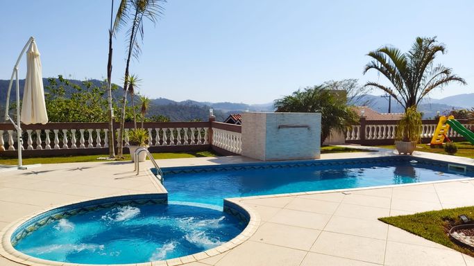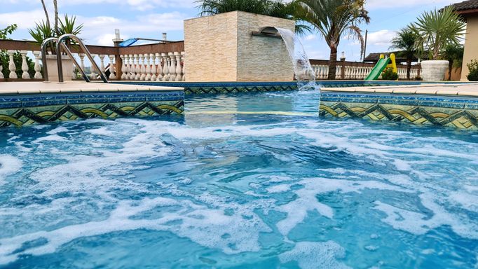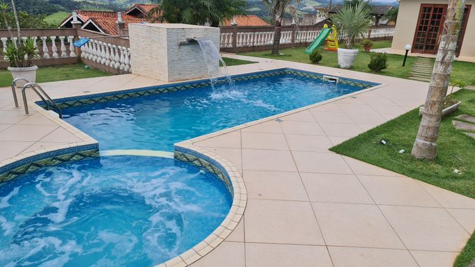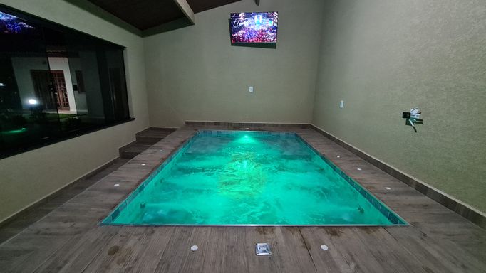 • Piscina com cascata, hidromassagem e iluminação LED
