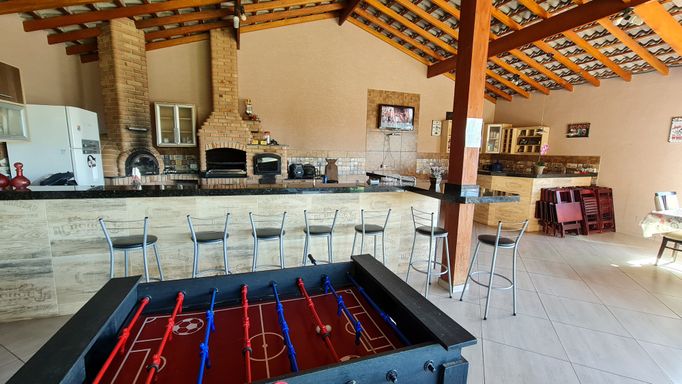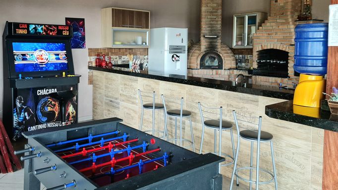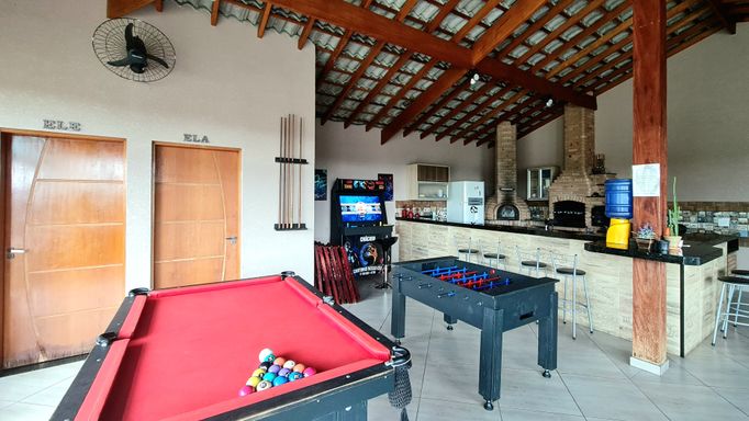• Mesa de sinuca, pebolim e fliperama com +20 mil jogos